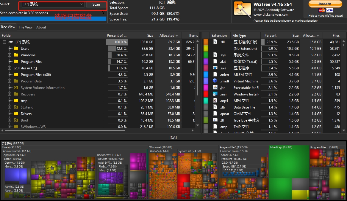 WizTree 是一款专为 Windows 用户设计的免费磁盘空间分析工具。它以其极快的扫描速度和直观的用户界面而受到推崇,能够帮助你迅速定位到占用硬盘空间大的文件和文件夹。无论是需要清理空间还是仅仅想要更好地管理磁盘使用情况,WizTree 都能提供强大的支持。它利用 NTFS 分区的特性直接读取 MFT 记录进行分析,达到了秒排序的效果。